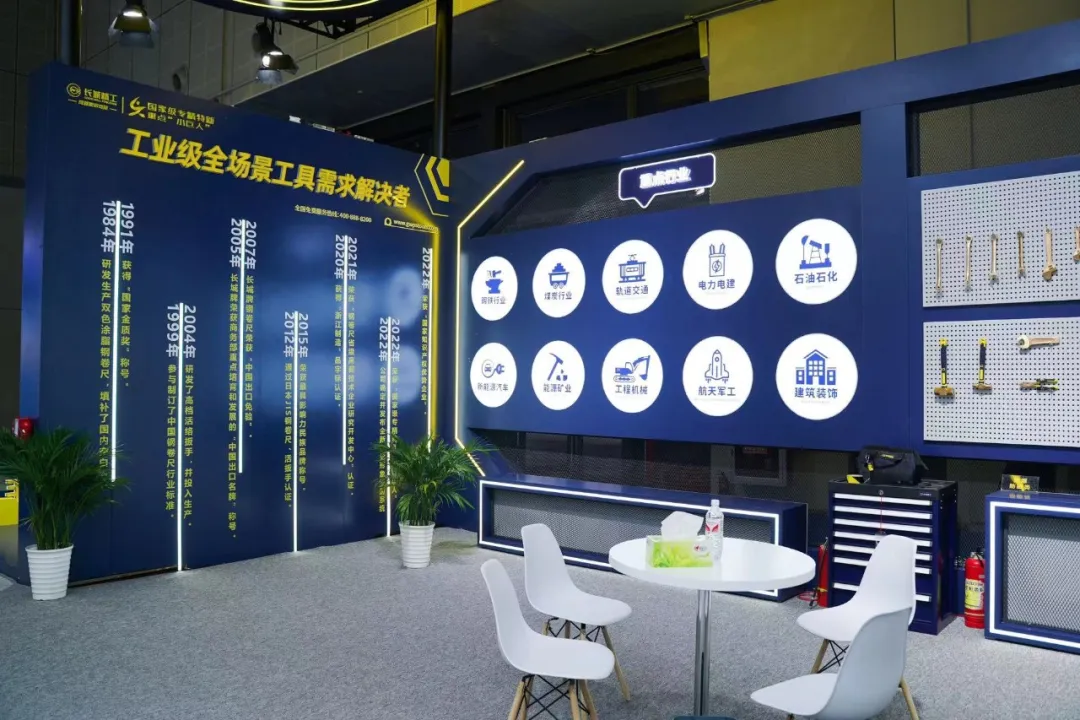 展館設(shè)計大氣開闊,布局合理,鮮活沉穩(wěn)的長城經(jīng)典配色相得益彰,獨具工業(yè)氣息。入口處專門設(shè)置的“長城精工40周年”展臺配合有趣的展臺活動,更是吸引了不少觀眾打卡留影。